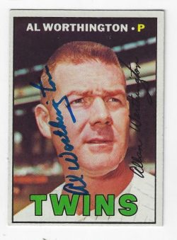 Autographed AL WORTHINGTON Minnesota Twins 1967 Topps Card