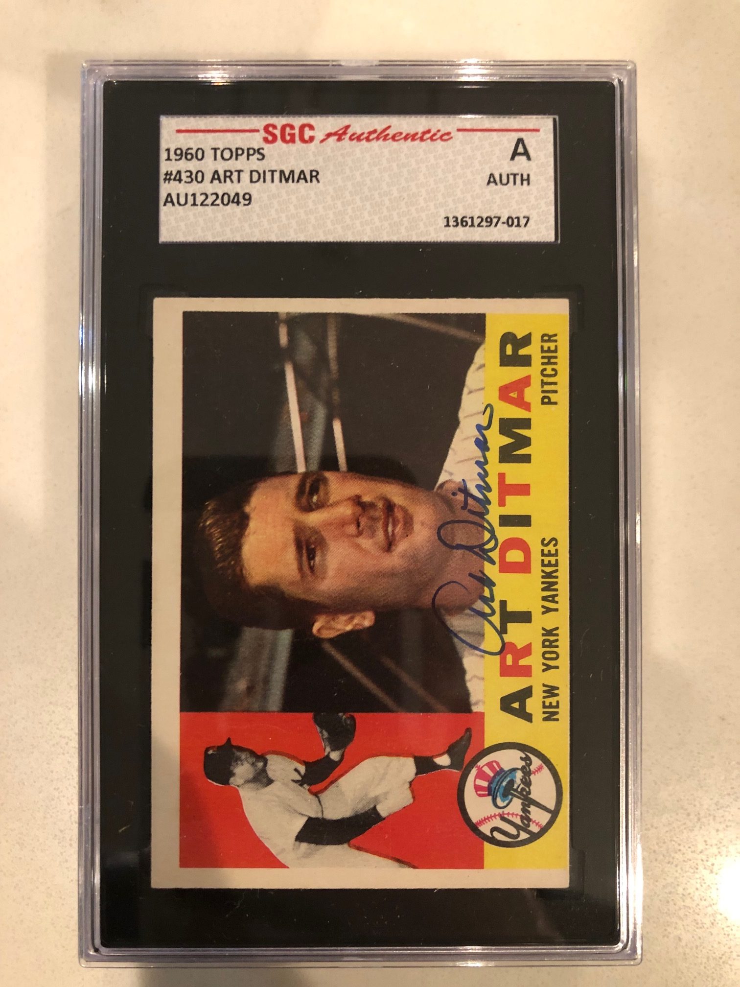 Autographed 1960 Topps Art Ditmar New York Yankees Card #430 – SGC Slabbed