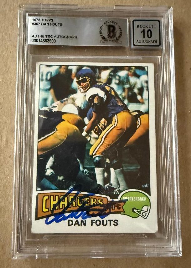 Autographed 1975 Topps Dan Fouts San Diego Chargers Rookie Card #367 BAS Beckett Slabbed. Autograph graded a 10.