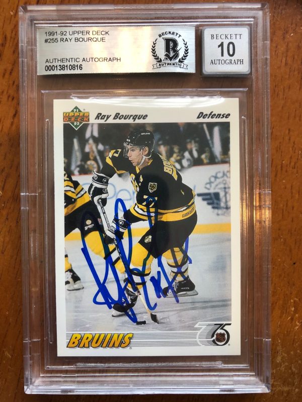 Autographed 1991-92 Upper Deck Ray Bourque Boston Bruins Card #255 Beckett Slabbed quantity
