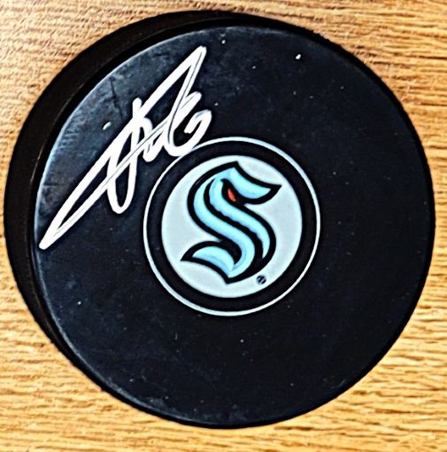 Autographed ADAM LARSSON SEATTLE KRAKEN Hockey Puck. Signed in Silver sharpie