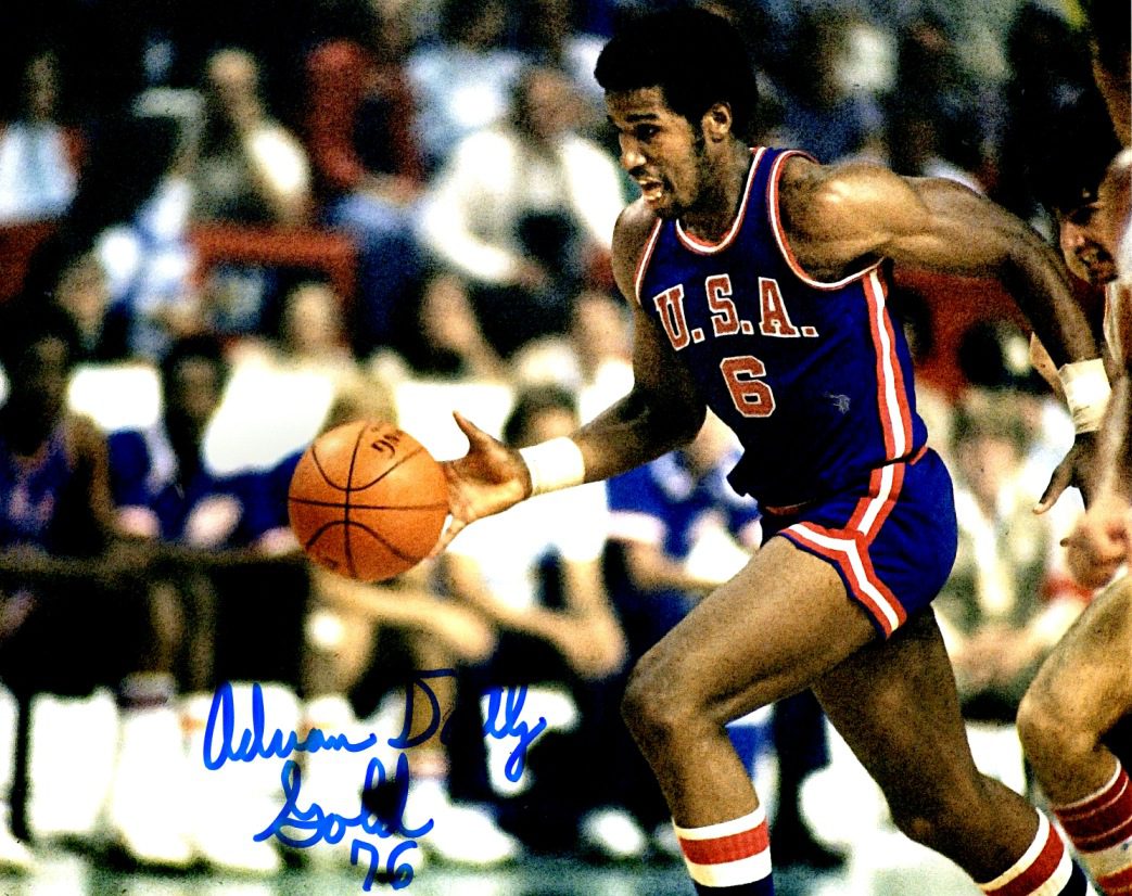 Autographed ADRIAN DANTLEY 8X10 USA photo , honored member of the Pro Basketball Hall of Fame.