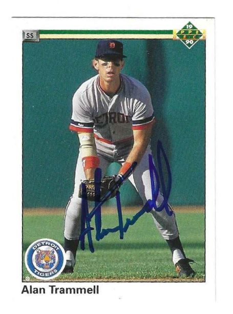 Autographed ALAN TRAMMELL 1990 Upper Deck #554. Signed in blue sharpie.
