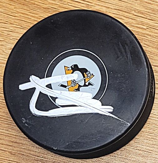 Autographed ALEX NEDELJKOVIC Pittsburgh Penguins Hockey Puck. Signed in Silver sharpie.