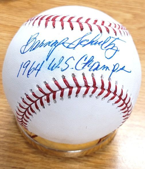 Official Rawlings Major League Baseball autographed by BARNEY SCHULTZ. Ball is signed in blue ball point pen.
