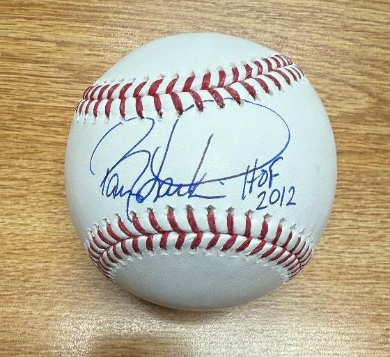 Autographed BARRY LARKIN HOF 2012 Official Rawlings Major League Baseball. Beckett Witnessed. Ball is signed in ball point pen.
