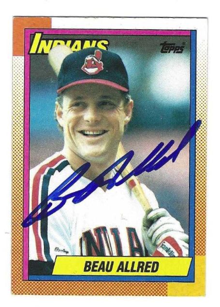 Autographed BEAU ALLRED Cleveland Indians 1990 Topps card