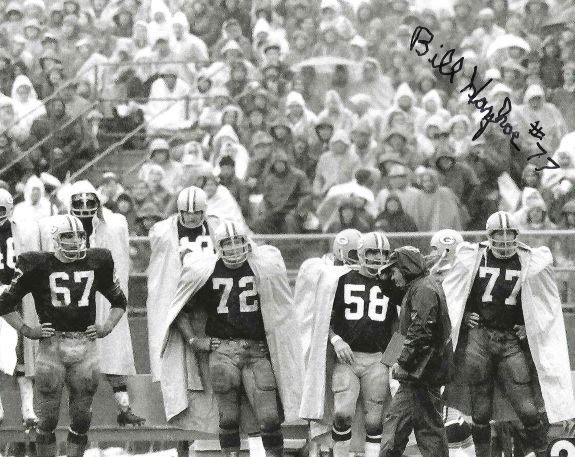 Autographed BILL HAYHOE 8X10 Green Bay Packers Photo. Photo is signed in blue sharpie.