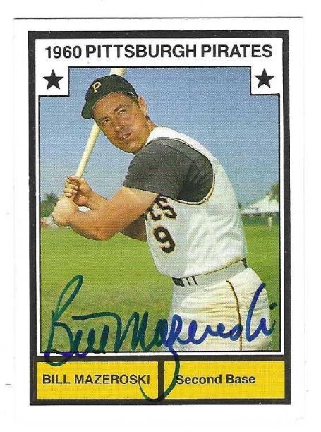 Autographed BILL MAZEROSKI 1987 TCMA Pittsburgh Pirates Card #2 w/COA. Signed in blue sharpie.