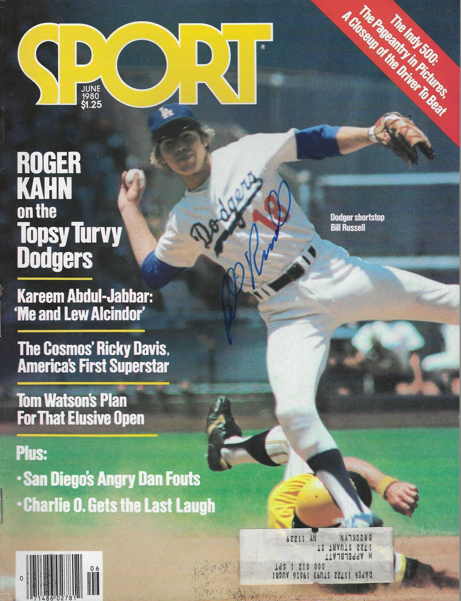 Autographed BILL RUSSELL Los Angeles Dodgers Sport Magazine June 1980. Signed in blue sharpie.
