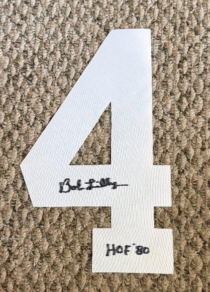 Autographed Bob Lilly Dallas Cowboys White Jersey Number 4 with HOF 80.