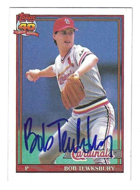 / Autographed BOB TEWKSBURY St. Louis Cardinals 1991 Topps Card