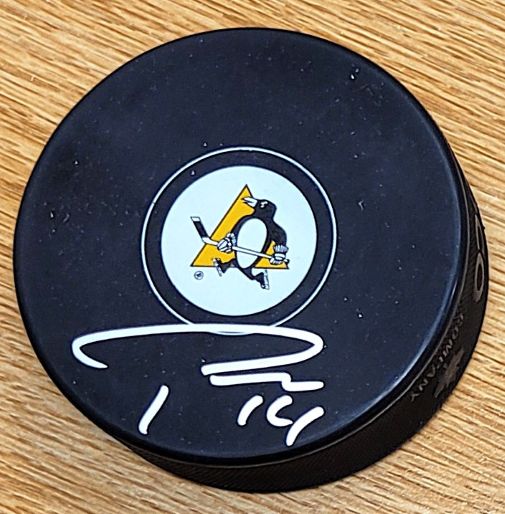 Autographed BOKONDJI IMAMA Pittsburgh Penguins Hockey Puck. Signed in Silver sharpie.