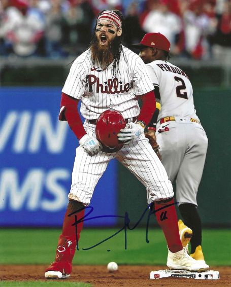 Here is an AWESOME item for Philadelphia Phillies baseball fans and collectors! It’s COLOR 8″ x 10″ glossy photo of BRANDON MARSH AND IT’S AUTOGRAPHED! Signed in blue sharpie.