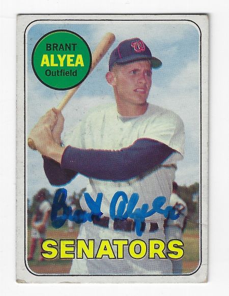 Autographed BRANT ALYEA Washington Senators 1969 Topps Card