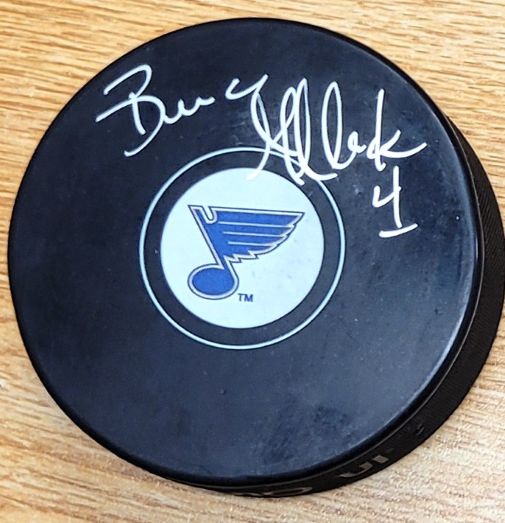 AUTOGRAPHED BRUCE AFFELCK St. Louis Blues Hockey Puck. Signed in Silver sharpie.