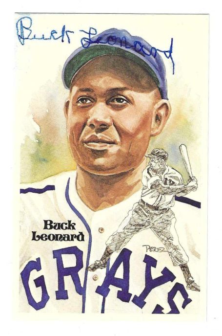Here is an AWESOME item for Baseball fans and collectors! It’s an AUTOGRAPHED Perez-Steele Post Card of Baseball Hall of Fame member, Buck Leonard. The card is in NR MT candition, and is signed in blue sharpie and is GORGEOUS! These card come numbered out of 10,000. They were produced by the famed Perez-Steele Gallaries.