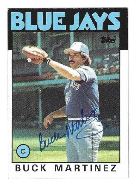 Autographed BUCK MARTINEZ Toronto Blue Jays 1986 Topps Card