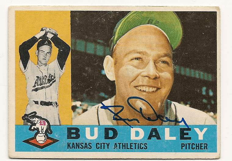 Autographed BUD DALEY 1960 Topps Card, #8. Signed in sharpie.