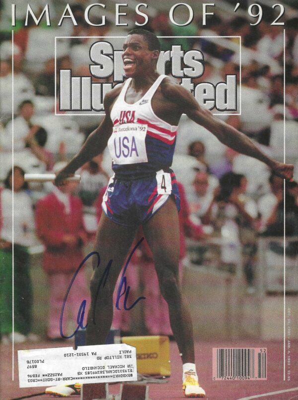 Autographed Carl Lewis Sports Illustrated Magazine 12/28/92-1/4/93 w/COA