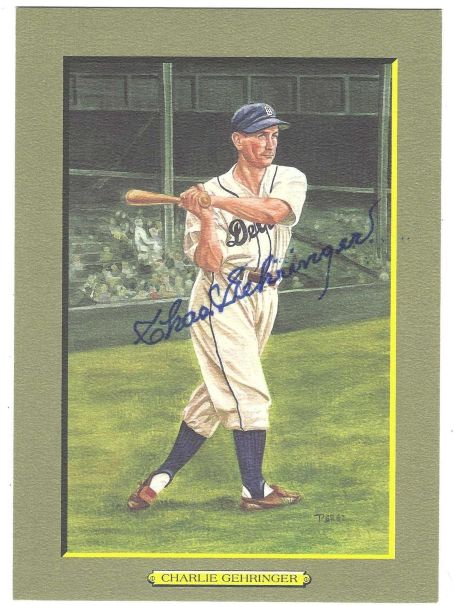 Here is an AWESOME item for Baseball fans and collectors! It’s an AUTOGRAPHED CHARLIE GEHRINGER Perez-Steele Great Moments card! The card is in NR MT condition, and is signed in blue sharpie and is GORGEOUS!