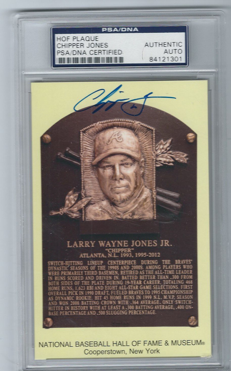 Autographed CHIPPER JONES Hall of Fame Gold Plaque Post Card PSA/DNA Slabbed