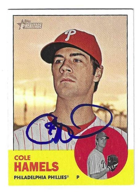 / Autographed COLE HAMELS Philadelphia Phillies 2012 Topps Heritage Card