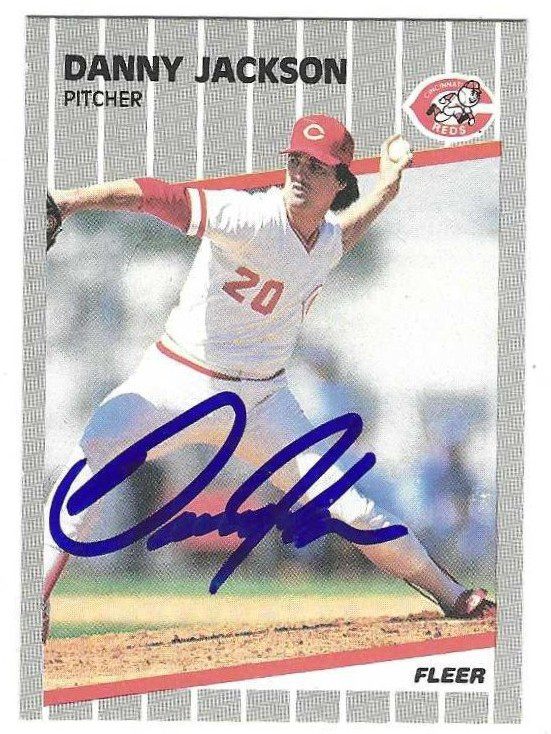 Autographed DANNY JACKSON 1989 Fleer card #163 . Card is signed in blue sharpie.