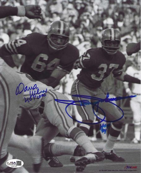 Autographed DAVE WILCOX & JIMMY JOHNSON 8X10 San Francisco 49ers Photo. This photo is signed in sharpie. JSA COA.