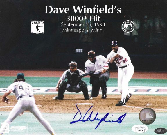 Autographed DAVE WINFIELD 8X10 Minnesota Twins Photo. Signed in blue sharpie. Mr. Winfield is a honored member of the Baseball Hall of Fame. JSA Authenticated.