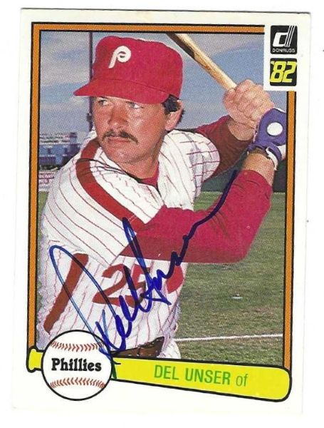 Autographed DEL UNSER Philadelphia Phillies 1982 Donruss Card