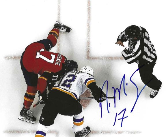 Autographed DEREK MACKENZIE 8X10 Florida Panthers Photo. Signed in blue sharpie.