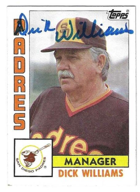 Autographed DICK WILLIAMS San Diego Padres 1984 Topps Card #742. Signed in sharpie.