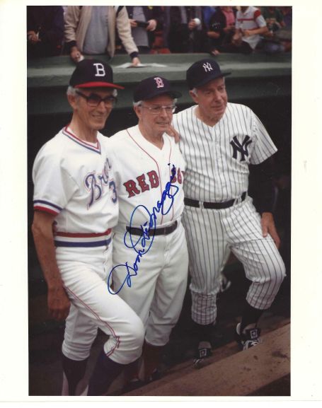 Here is an AWESOME item for Boston Red Sox baseball fans. its an autographed 8×10 photo of DOM DIMAGGIO. It is signed in BLUE sharpie and is GORGEOUS!