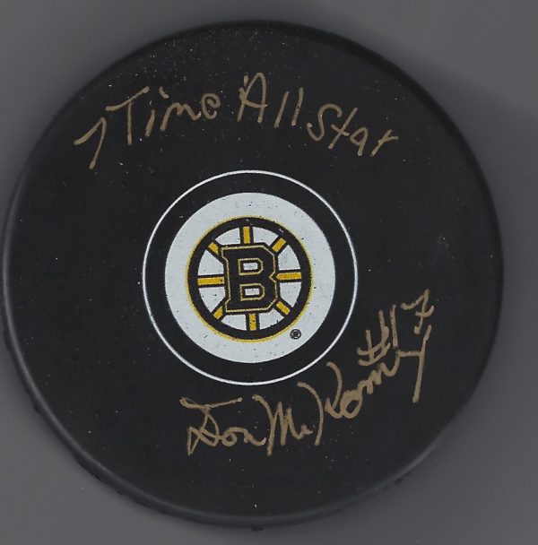 AUTOGRAPHED DON MCKENNY Boston Bruins hockey Puck. Signed in silver sharpie.