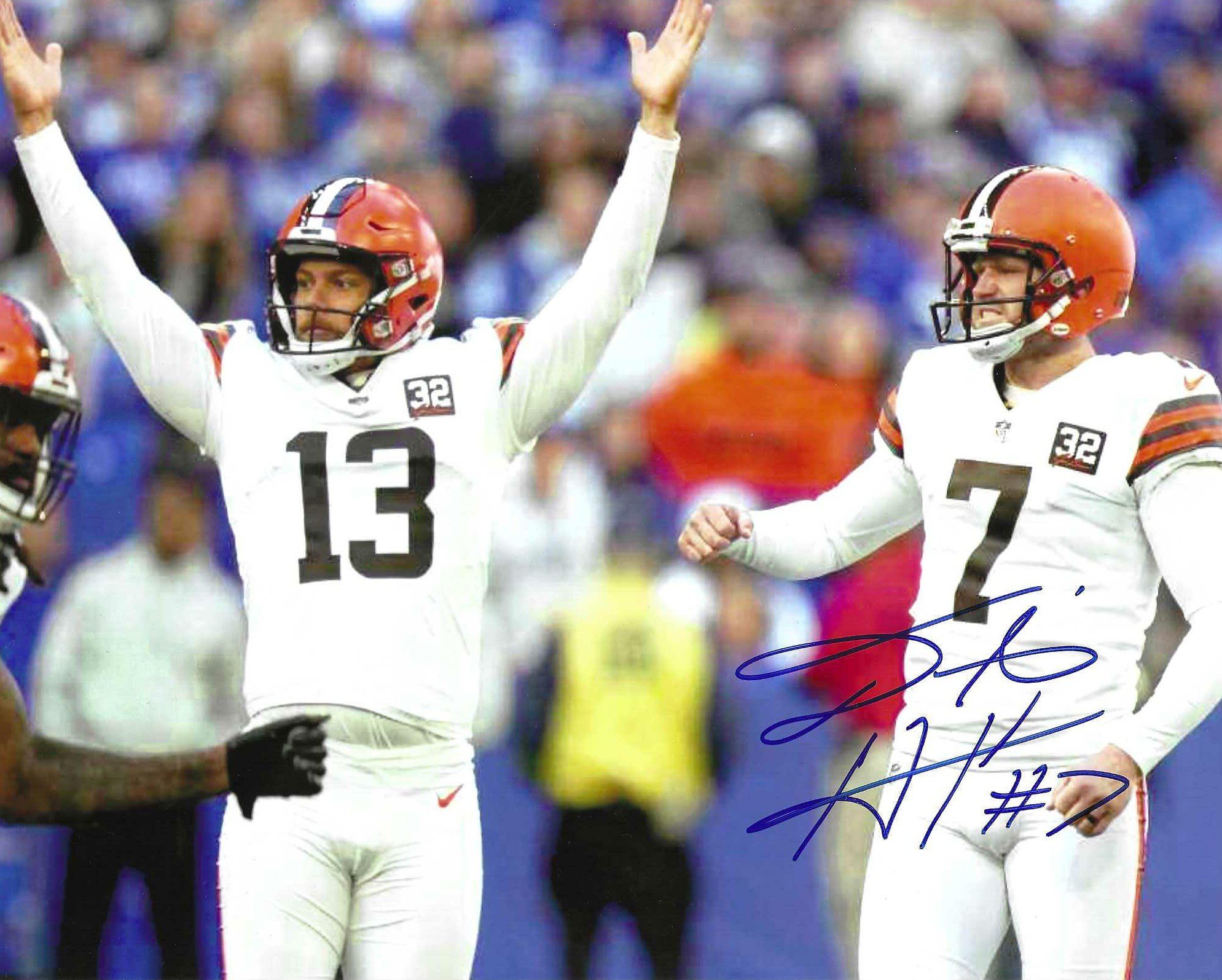 Autographed DUSTIN HOPKINS 8X10 Cleveland Browns photo. Signed in sharpie.