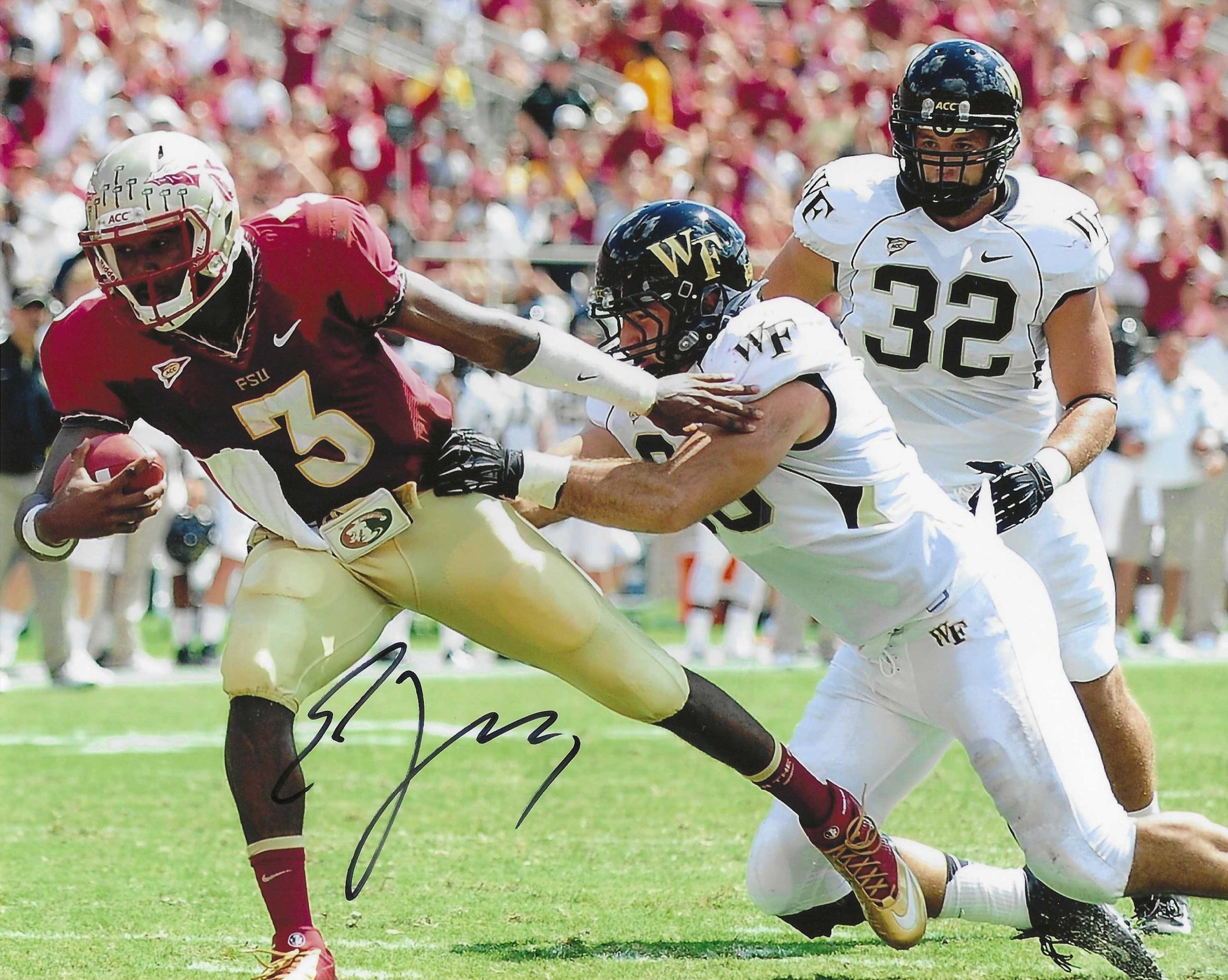 Autographed E.J. MANUEL Florida State Seminoles 8×10 Photo. Signed in blue sharpie.
