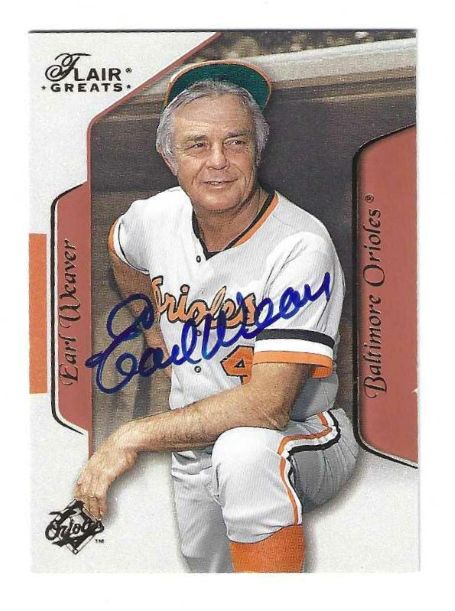 Autographed EARL WEAVER 2003 FLEER FLAIR GREATS CARD #15