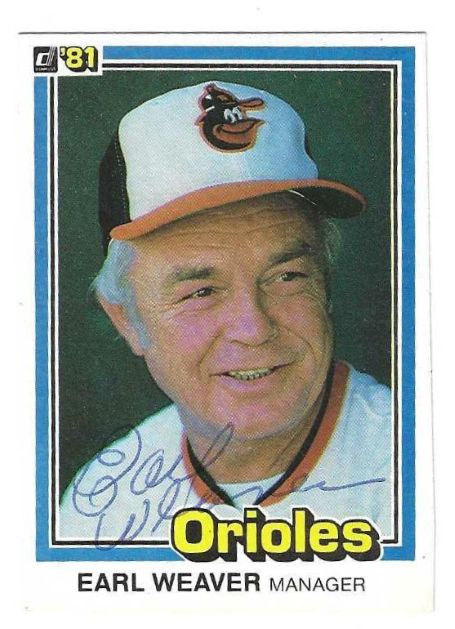 / Autographed EARL WEAVER Baltimore Orioles 1981 Donruss card