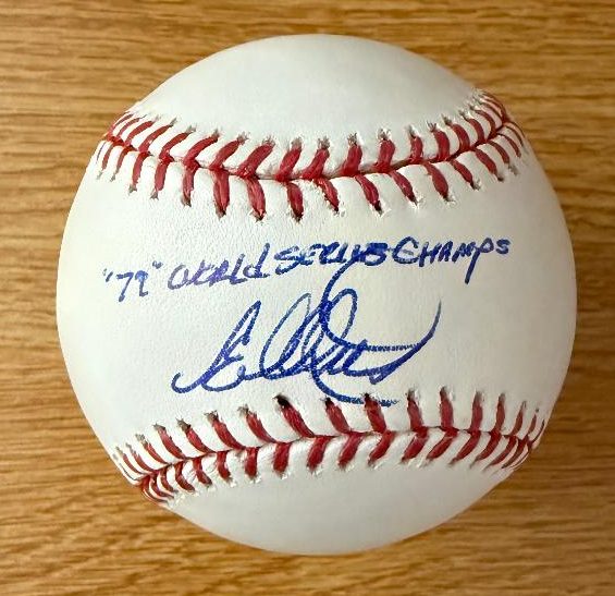 Here is an AWESOME item for baseball fans and collectors! It’s an official Rawlings Major League Baseball autographed by, ED OTT with the “79 World Series Champs” It’s signed in blue ball point. Signature is very nice.