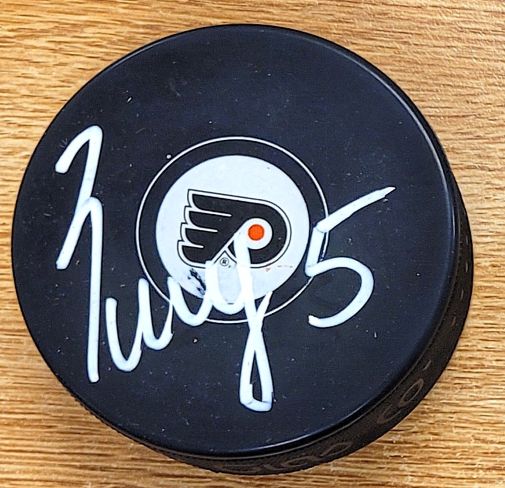 AUTOGRAPHED EGOR ZAMULA Philadelphia Flyers Puck. Signed in Silver sharpie.