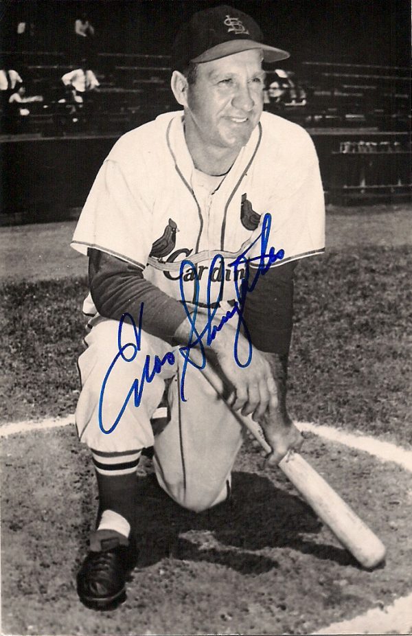 Autographed ENOS SLAUGHTER St. Louis Cardinals Black and White Rowe Post Card.