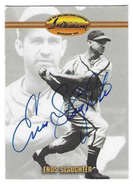 Signed ENOS SLAUGHTER 1993 TED WILLIAMS CARD COMPANY card #92. Card is signed in sharpie.