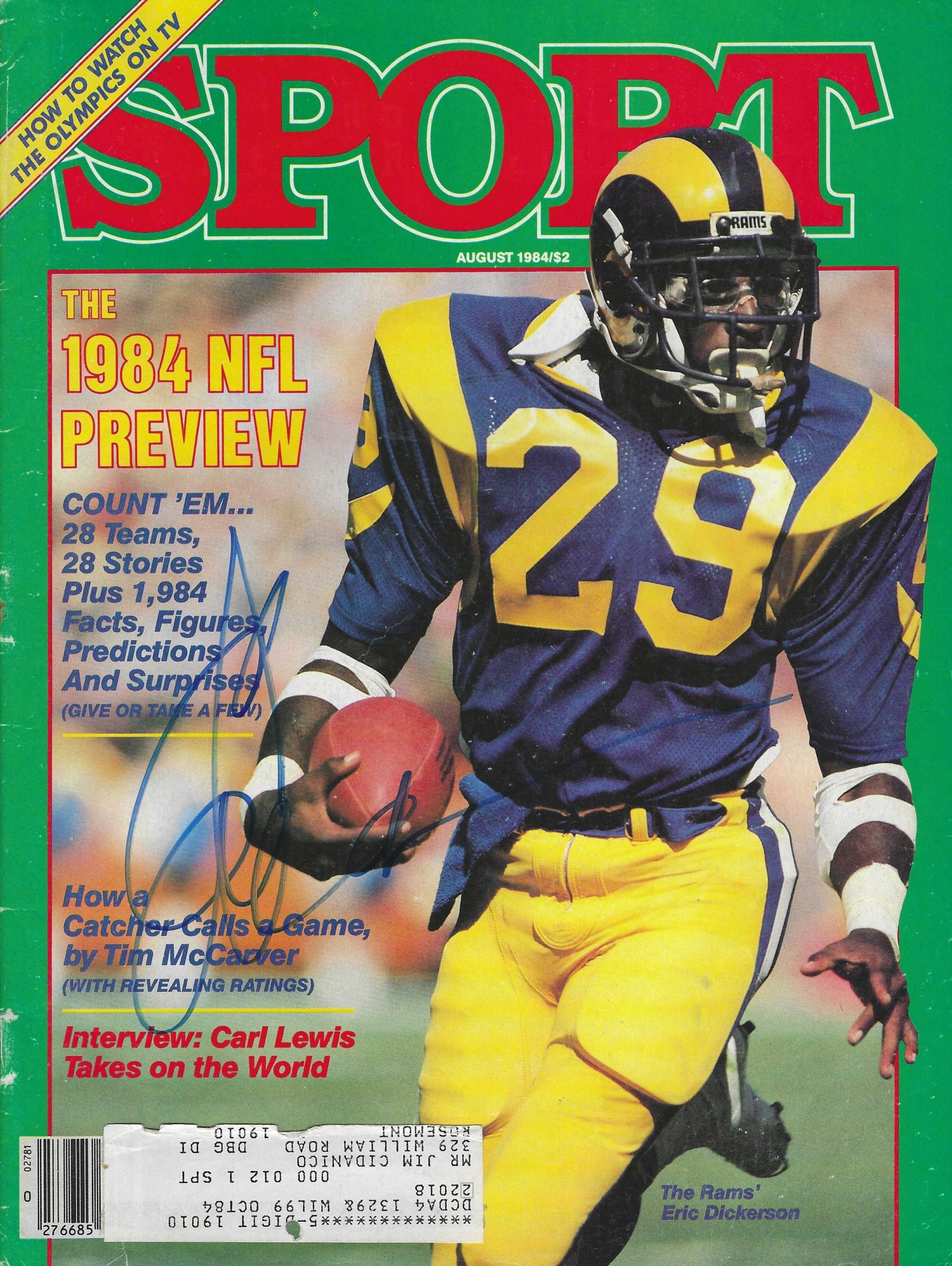 Autographed ERIC DICKERSON Los Angeles Rams Sport Magazine August 1984 Signed in blue sharpie.