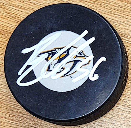 Autographed ERIK HAULA Nashville Predators Hockey Puck. Signed in Silver sharpie.