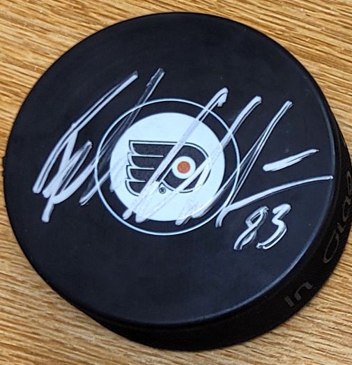 Autographed FELIX SANDSTROM Philadelphia Flyers Hockey Puck. Signed in Silver sharpie.