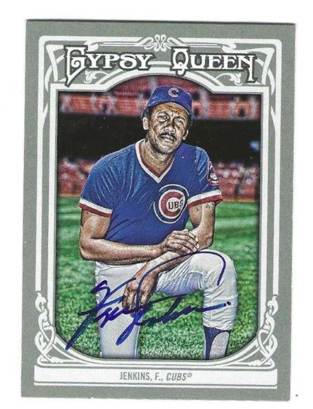 Autographed FERGIE JENKINS Chicago Cubs 2013 Topps Gypsy Queen Card #210. Signed in blue sharpie.