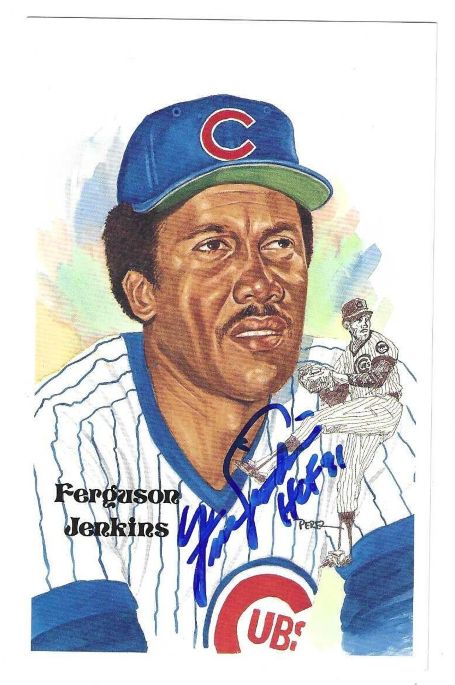 Here is an AWESOME item for Baseball fans and collectors! It’s an AUTOGRAPHED Perez-Steele Post Card of Baseball Hall of Fame member, Fergie Jenkins. The card is in NR MT condition, and is signed in blue sharpie and is GORGEOUS! These cards come numbered out of 10,000. They were produced by the famed Perez-Steele Galleries.