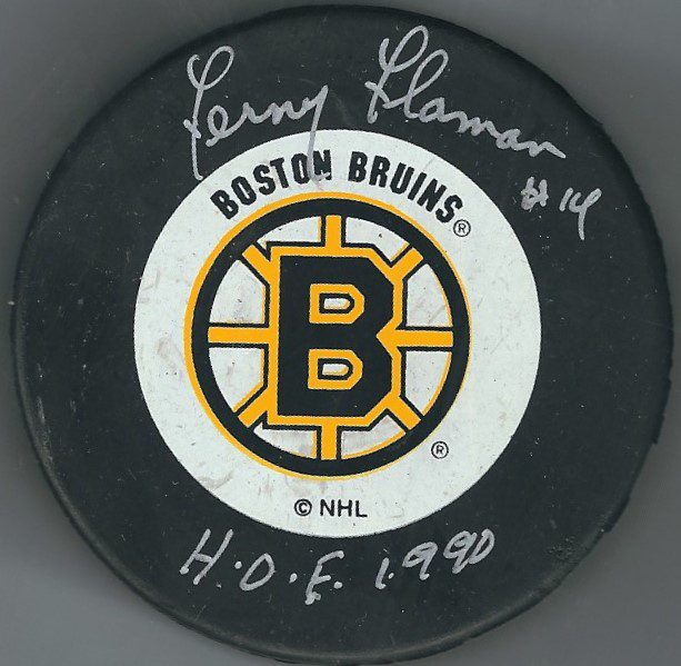 Autographed FERN FLAMAN Boston Bruins Hockey Puck. Signed in Silver sharpie.