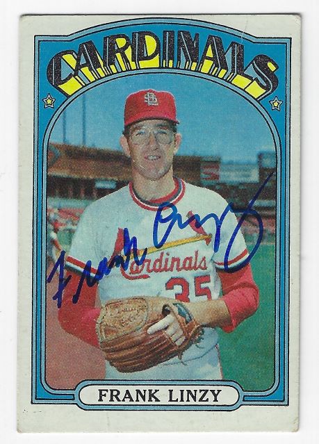 Autographed FRANK LINZY St. Louis Cardinals 1972 Topps Card